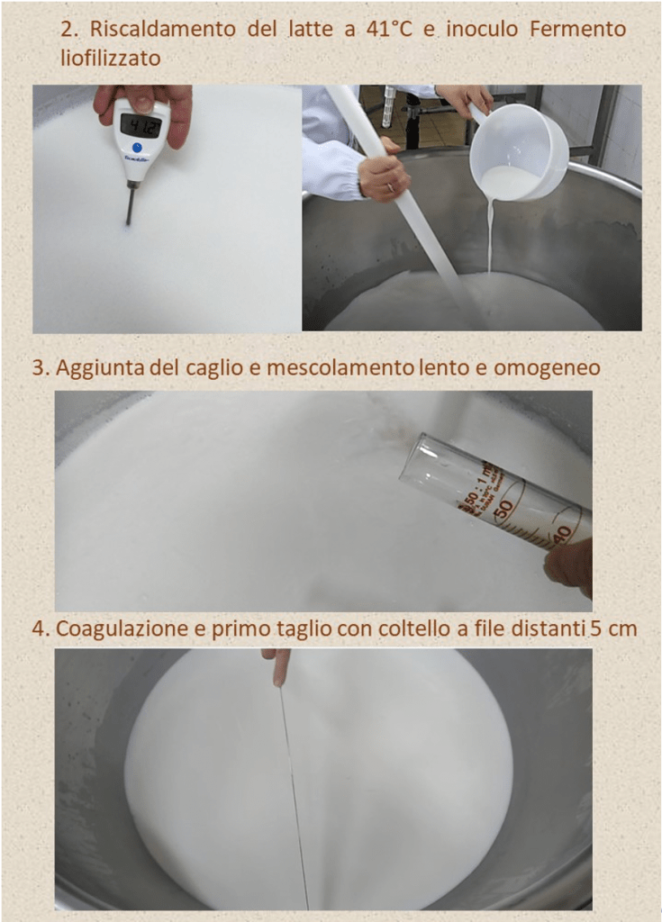 Il processo ha interessato il latte raccolto dalla mungitura delle ore 14.00 (la seconda di 3 mungiture) nei giorni di campionamento del latte per le analisi chimico-sensoriali (T0, T27, T29 e T35), ossia il giorno prima dell’inizio della prova di alimentazione, e il 1°, 3° e ultimo giorno di periodo sperimentale (12 gennaio, 8, 10 e 16 febbraio 2021). Le lavorazioni a T27, T29 e T35 rappresentano le 3 ripetizioni di caseificazione per evitare le variabili dipendenti dal processo produttivo. I formaggi ottenuti da ciascuna lavorazione sono stati utilizzati per la valutazione dell’effetto dell’integrazione con le microcapsule sulle proprietà tecnologiche (resa) e sulla qualità chimico-nutrizionale e sensoriale dei formaggi ottenuti.