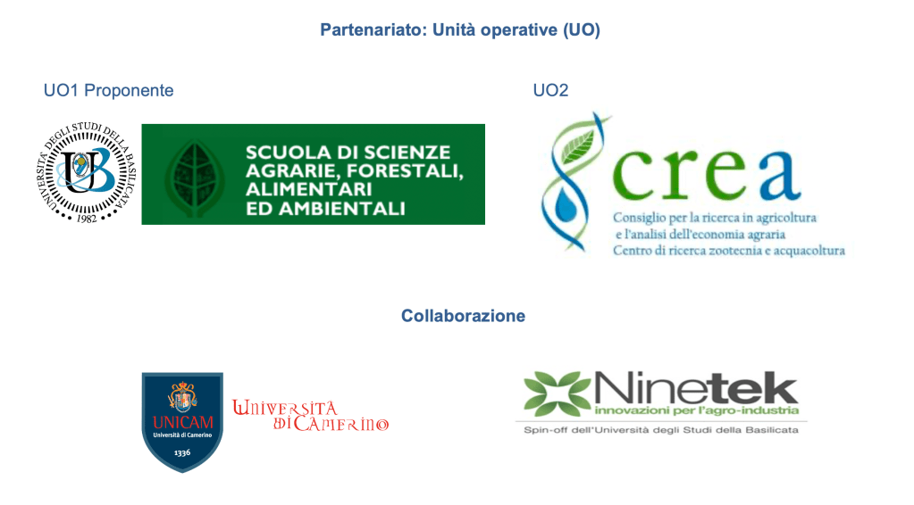 Il Progetto prevede la collaborazione di 3 gruppi di Ricerca afferenti alla Scuola di Scienze Agrarie dell’Università degli Studi della Basilicata. I gruppi coinvolti sono: